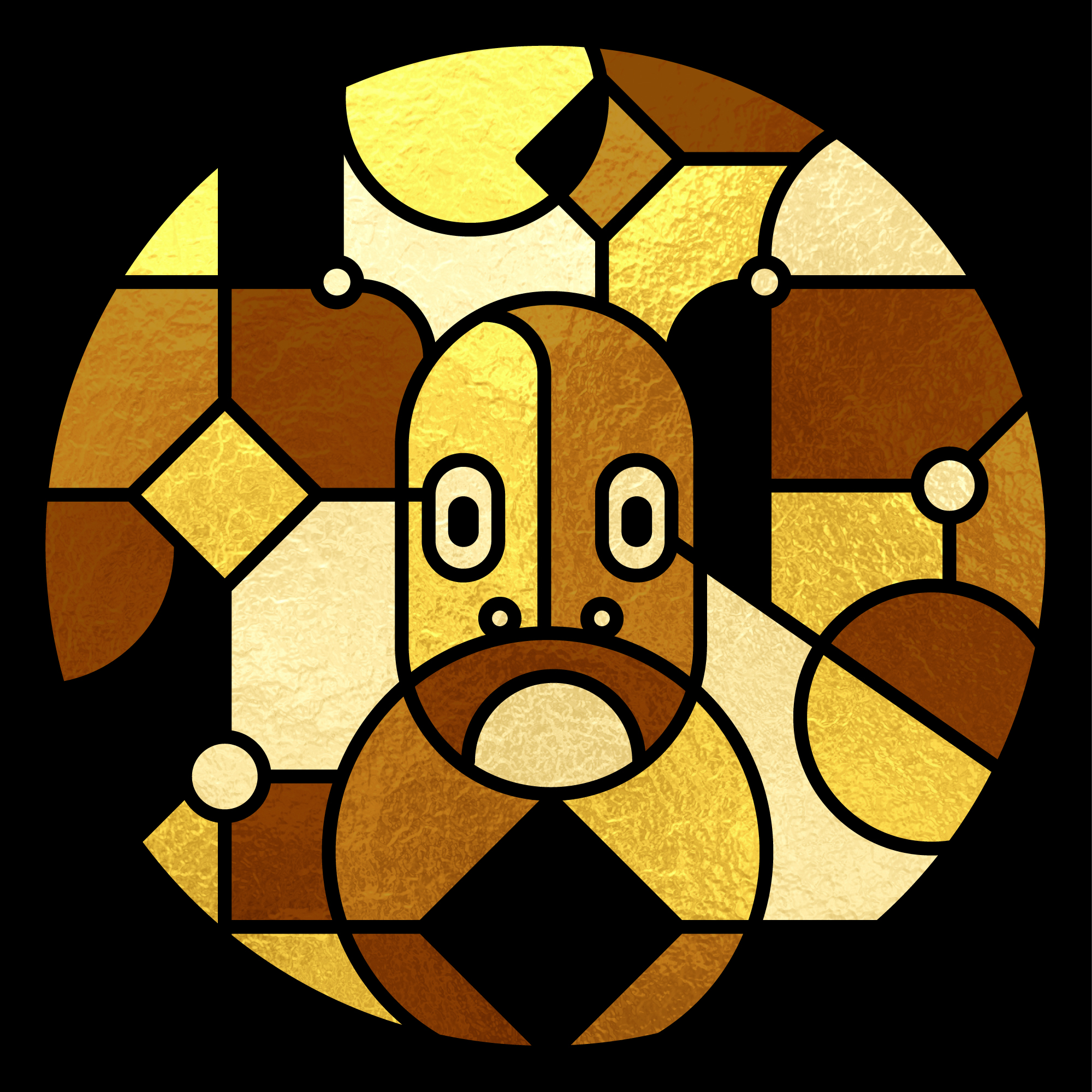 "description": "This is a unique and rare gold 1 of 1 collectible creature by Hashglass Mosaics. ",